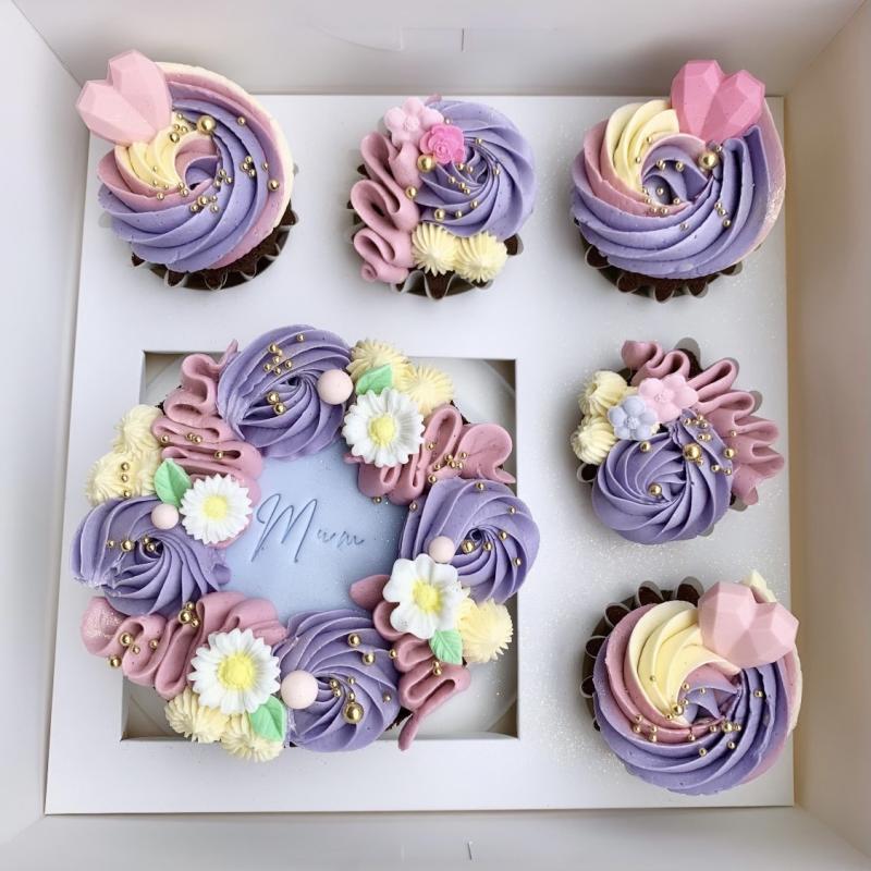 5 inch mini cake with 5 cupcakes