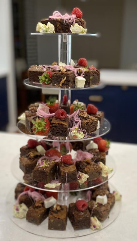 Our delectable brownies are baked with all natural ingredients and that extra bit of care and attention. As well as a range of delicious flavours, including classic Triple Chocolate, Raspberry, Orange and Hazelnut, we also have some scrumptious platters, afternoon tea boxes and brownie towers which are customisable to your exact tastes and baked to order. Catering for work events, weddings and parties is available. Contact me to discuss your requirements and for any additional info.