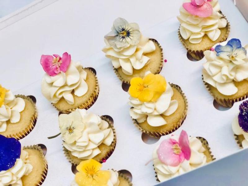 Introducing our exquisite Mini Cupcakes with Freeze Dried Edible Flowers. These meticulously decorated treats showcase delicate edible blooms atop moist cupcakes, vanilla buttercream and a sprinkle of jewel dust.